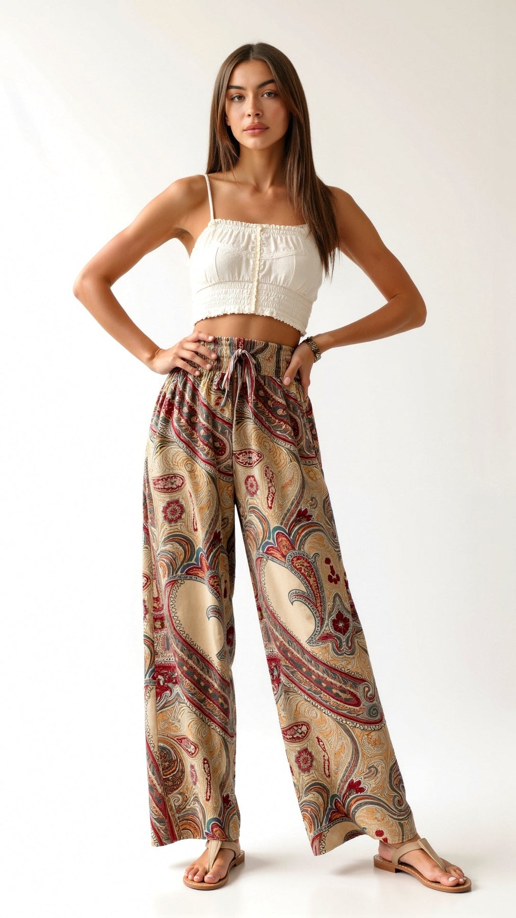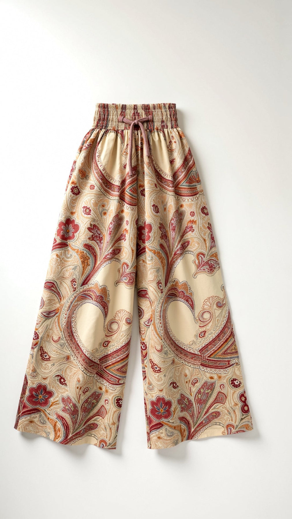 The 'Pam' Pants capture bohemian elegance with carefree versatility in flowing wide-leg trousers featuring signature paisley print in bright hues with ethereal movement.